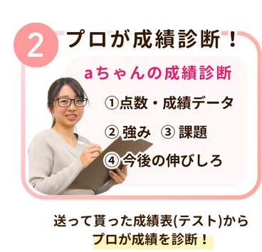 成績表やテストの写真を送るだけで、家庭教師歴20年以上の経験豊富な講師が弱点やミスの傾向を丁寧に分析します!!