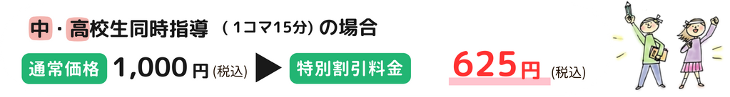 ※関西エリアの中学受験をする小学生のお子さんの指導、私立中学などで指導内容が高校の範囲に入った場合は1コマ(15分)550円になります。