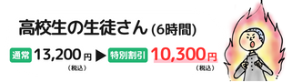 ※関東エリアは、小中学生1コマ(15分)500円、高校生550円です。