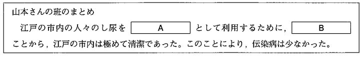 2 【正答 A:(例)畑や水田の肥料 B:(例)農村へ運び出された】