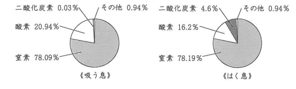 【資料】ヒトの吸う息とはく息のそれぞれにふくまれる気体の体積の割合(水蒸気を除く)