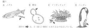 [Ⅰ] 図1のA~Dはそれぞれの生物の親と子(新しい個体)にあたるものを表している。