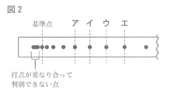 記録タイマーは1秒間に60回打点するので、0.1秒間では打点は6回ということになる。基準点から6番目の打点はウ。