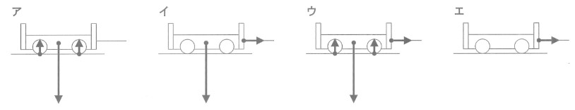 (3) 区間Hで力学台車にはたらいている力を図示したものとして適切なものを、次のア~エから1つ選ん で、その符号を書きなさい。