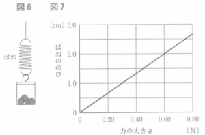 図7は、 ばねに加えた力の大きさとばねののびの関係を表したものである。