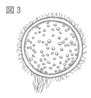 (3) 図3は、メダカの受精卵を表している。メダカの受精卵の形成や、成体になるまでの過程を説明した文として適切なものを、次のア~エから1つ選んで、その符号を書きなさい。