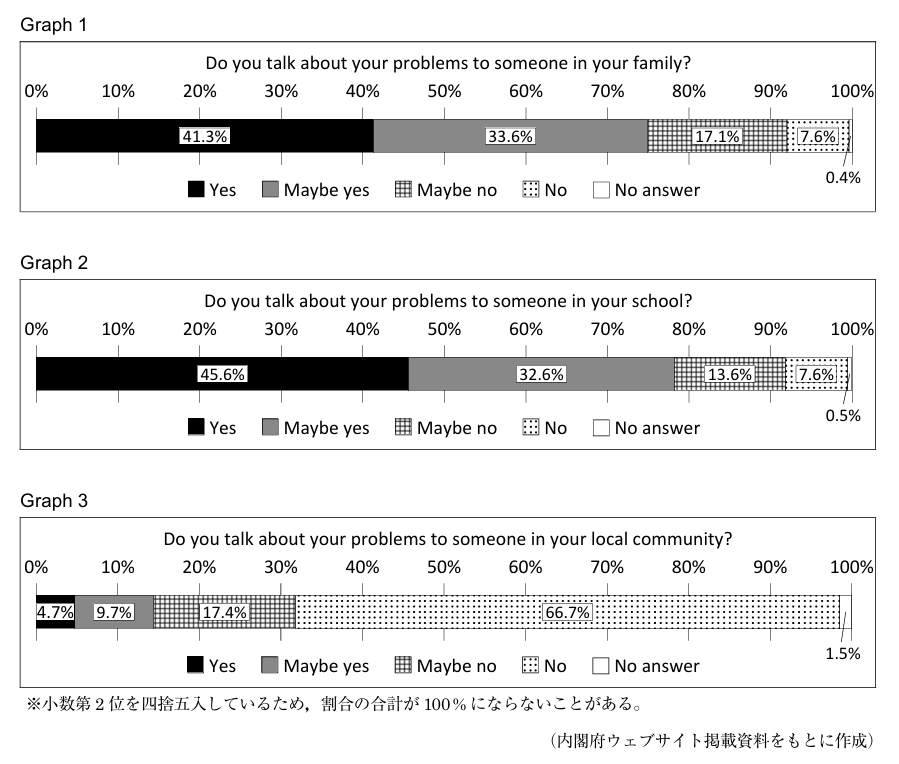 Amira: We are talking about our presentation in your class. We are going to make a presentation about *solutions to the problem of *unstable *access to *nutrition. But Yamato doesn’t think this is a big problem in Japan.