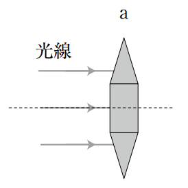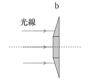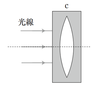 cは光が通る道が図1の凸レンズと異なるので不適です。