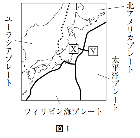 図 1 のように,日本付近には 4 枚のプレートがあり,これらの境界付近で地震が多く発生する。