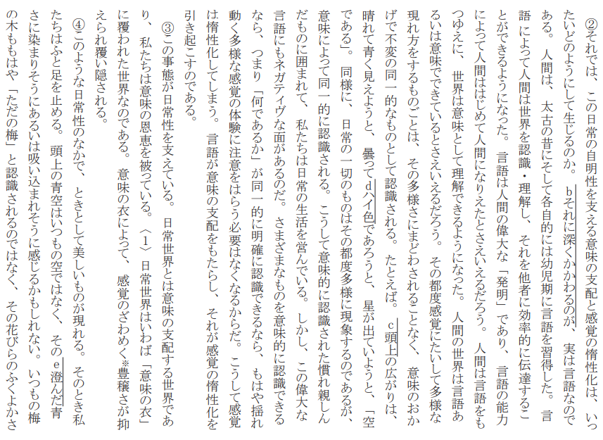 (1)本文中のaそれが感覚的にどの ようかをあらためて 体験するとは、どのようなことを指しているの か、