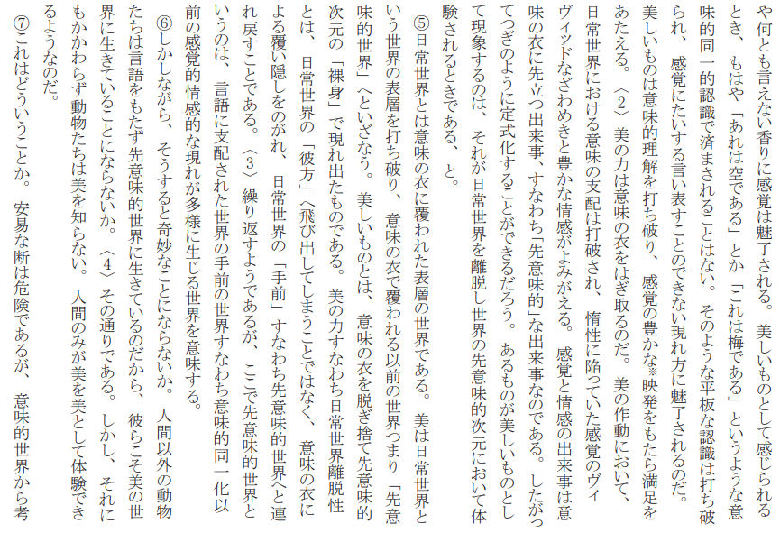 次の文章を読み、問い 1~11に答えよ。( ①~⑦は各段落の番号を示したものである。 )