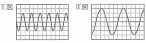 操作②の音の波形を示したⅡ図では1回の振動に2目盛りかかり、これが1/500なので、横軸の1目盛りは0.001秒である。