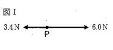 (2) 図Ⅰのように、点Pに対して左向きに 3.4 N、右向きに 6.0 N の力がはたらいているとき、これらの2力の合力は、右向きに何Nか、求めなさい。ただし、これらの2力は一直線上にあるものとする。