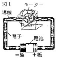 ・電池に接続した㋐導線とモーターに電流が流れ、 モーターが回転するようすを表すと、 図Ⅰのようになる。