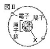 図Ⅱ中のXは、一般に陽子とともに原子核を構成するもので、 【 a 】と呼ばれている。