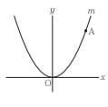 (9) 次の図において、mは関数$y=ax^2$(aは定数)のグラフを表す。Aはm上の点であり、その座標は(5,7)である。aの値を求めなさい。
