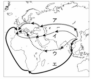 8世紀に唐からイスラム帝国(イスラム世界)の支配地に入って、バグダッドに至り、10世紀ごろには現在のエジプトへ、さらに北アフリカを西に向かってすすみ、12世紀には現在のスペインに至ったとされている。