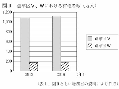 ・2015年に改正された公職選挙法にもとづいて、2016(平成28)年の参院選が行われた。議員の定数が変更された選挙区に、選挙区V、Wがあった。