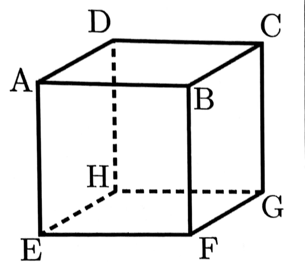 (5)次の図の立方体ABCD-EFGHにおいて、辺ABとねじれの位置にある辺の数はいくつか。