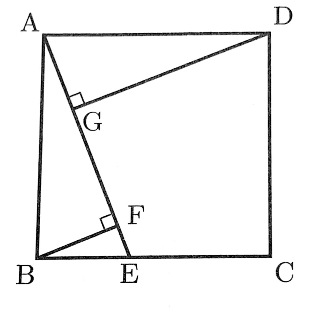 (3)次の図のように、正方形ABCDの辺BC上に点Eをとり、頂点B,Dから線分AEにそれぞれ垂線BF,DGをひく。