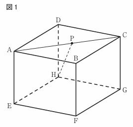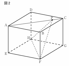右の図2は、図1において、頂点Fと頂点H、頂点Fと点Pをそれぞれ結んだ場合を表している。