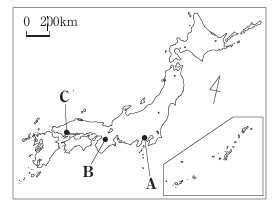 次の略地図を見て、あとの各問に答えよ。