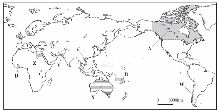 (2)技術者などは世界各地に赴き、ものづくりに関する技術を伝え、我が国の技術がその地域の経済発展などに貢献している。。とあるが、次のⅠのグラフのW〜Zは,略地図中に