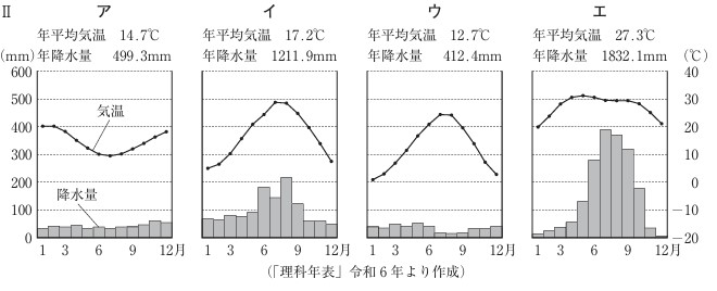 天気図は年平均気温が一番高いエが該当します。