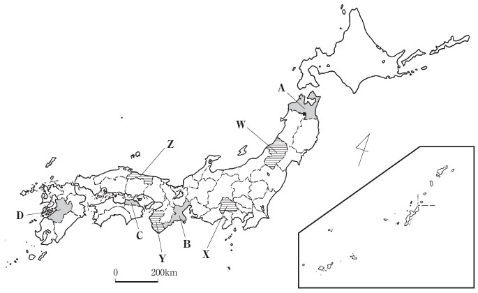 次のページのⅠとⅡの表のア〜エは、略地図中に