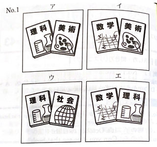 問1 No.1~No.3の英文を聞き、それぞれの英文の内容を最もよく表しているものを、次のア~エからひとつずつ選び、記号で答えなさい。英文は1回のみ放送します。