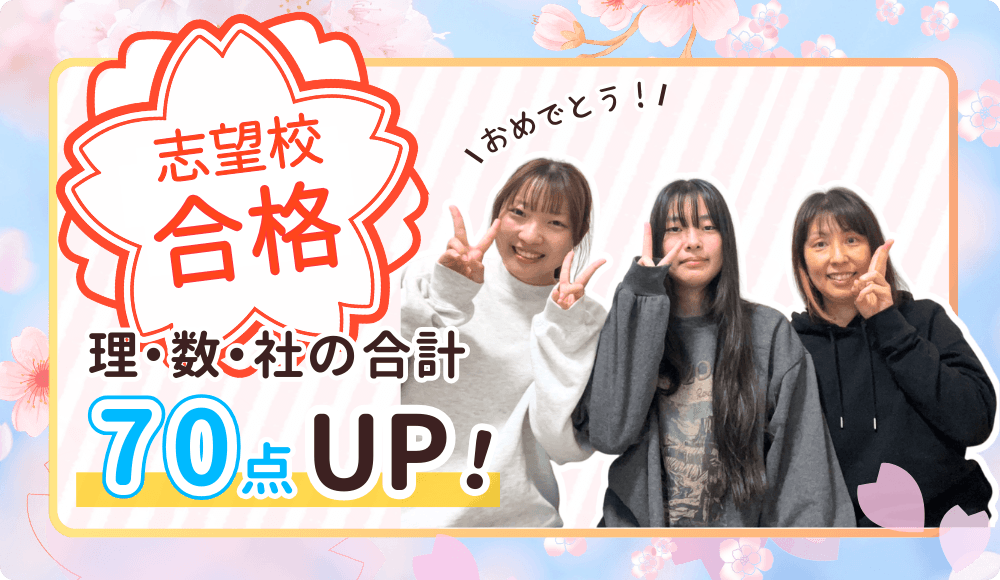 また、指導を通して、理科・数学・社会のテストが合わせて70点UPしました!