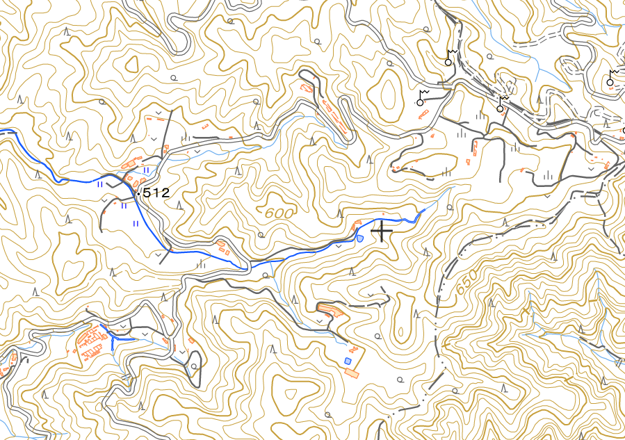 地図上で、高さの等しい地点を結んだ線は等高線といって、縮尺2万5千分の1の地形図では 10m ごと、5万分の1の地形図では 20m ごとに引かれています。